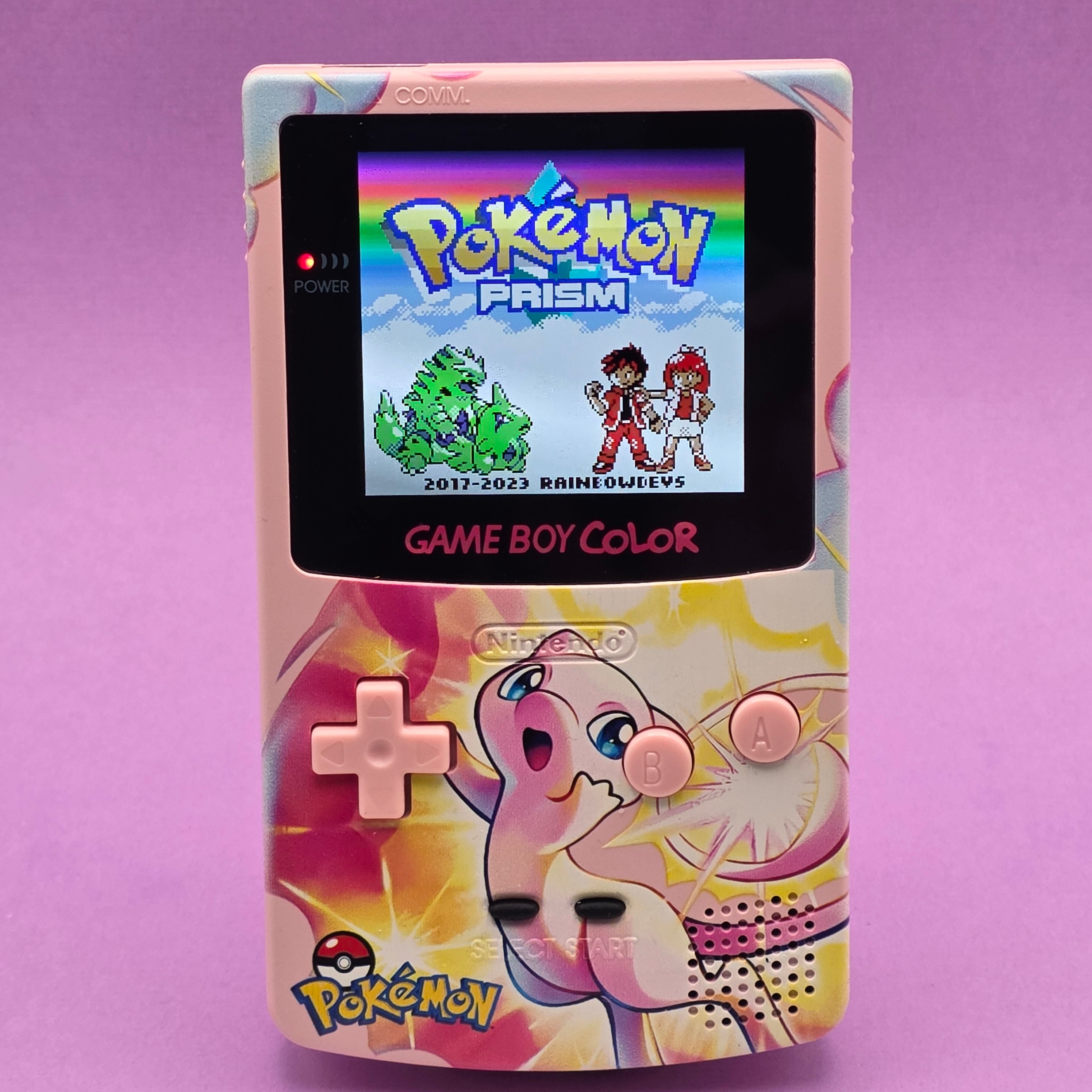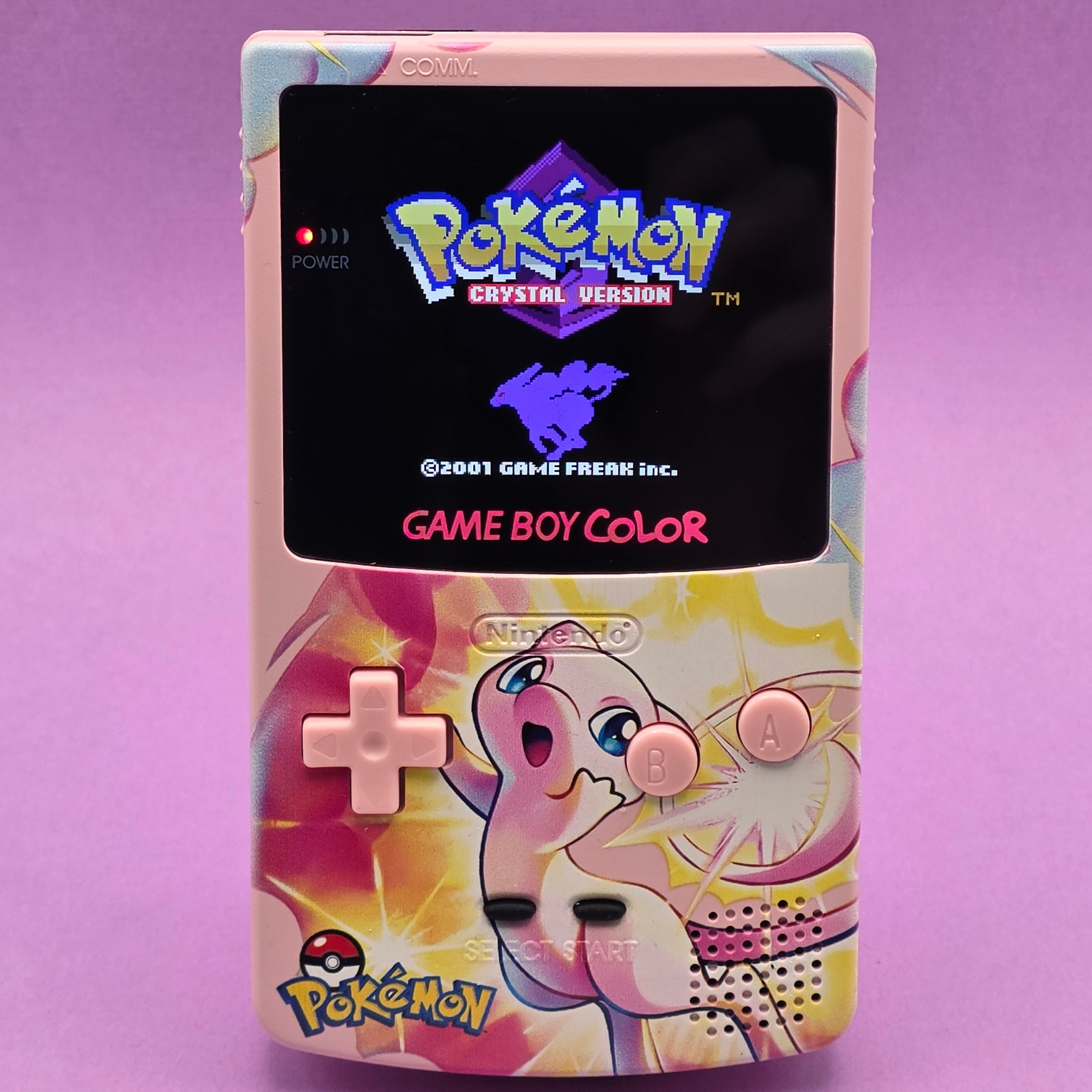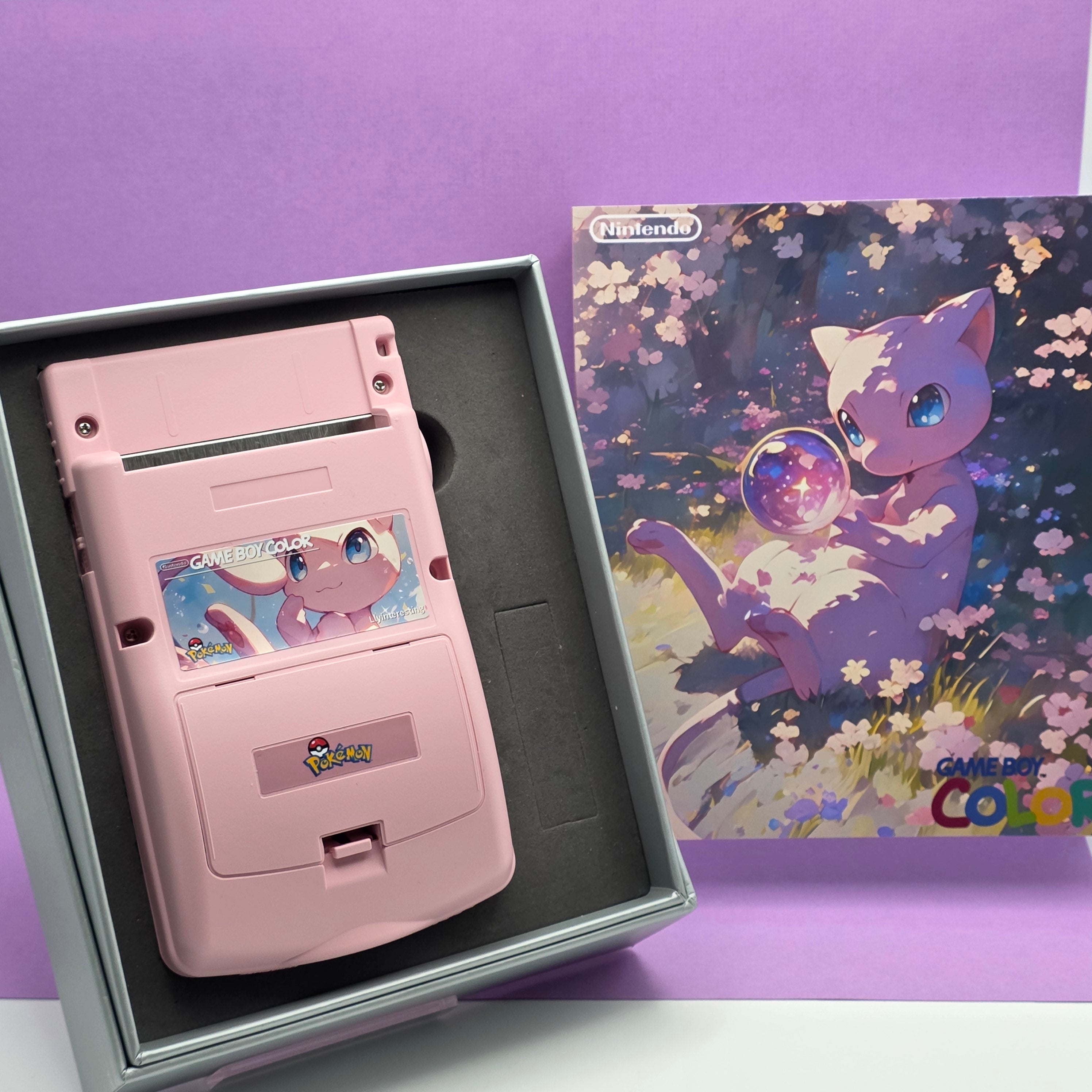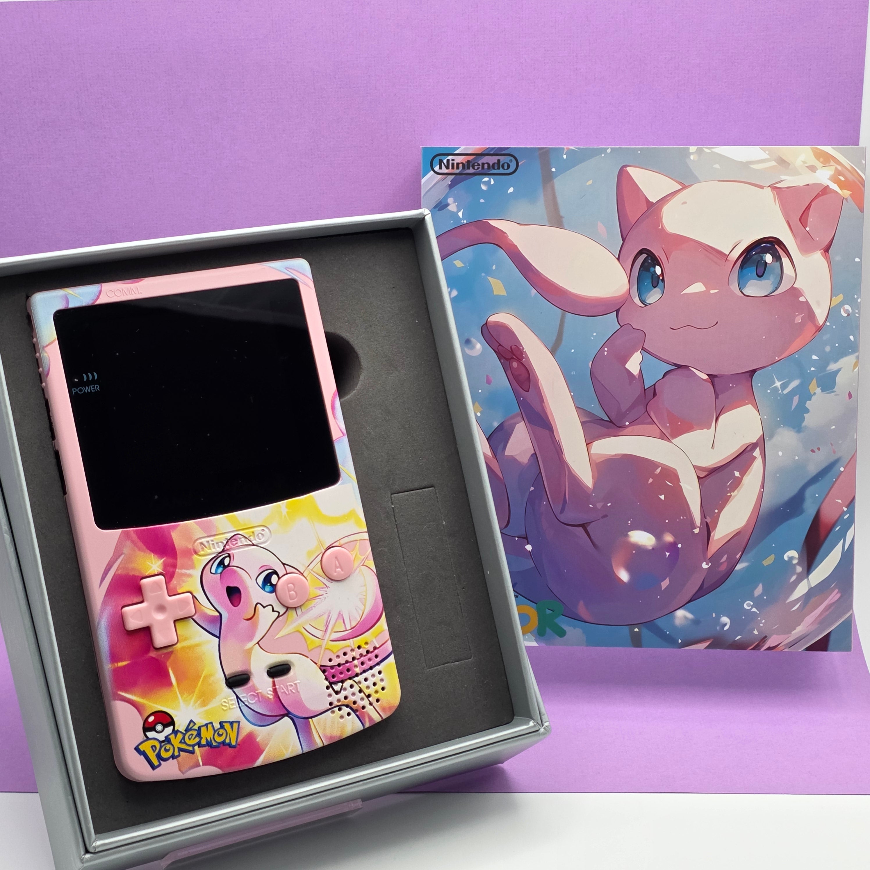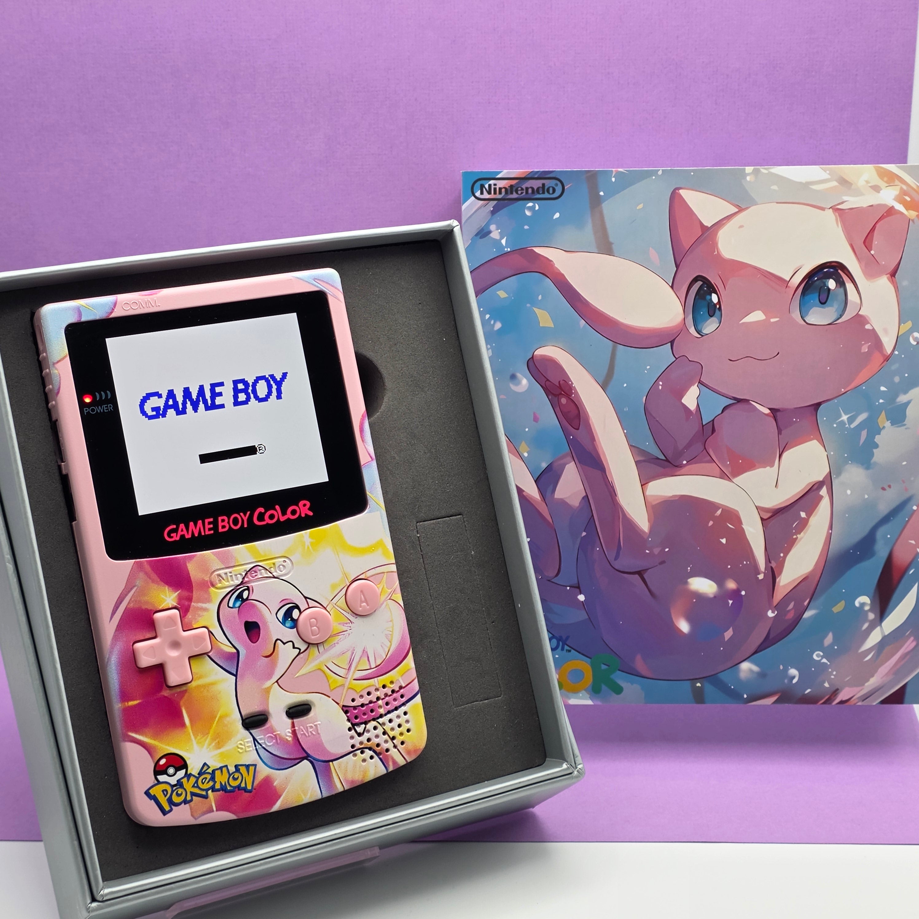 Here we have a Modded Game Boy Color with an AMOLED screen featuring a custom UV printed Mew Shell.